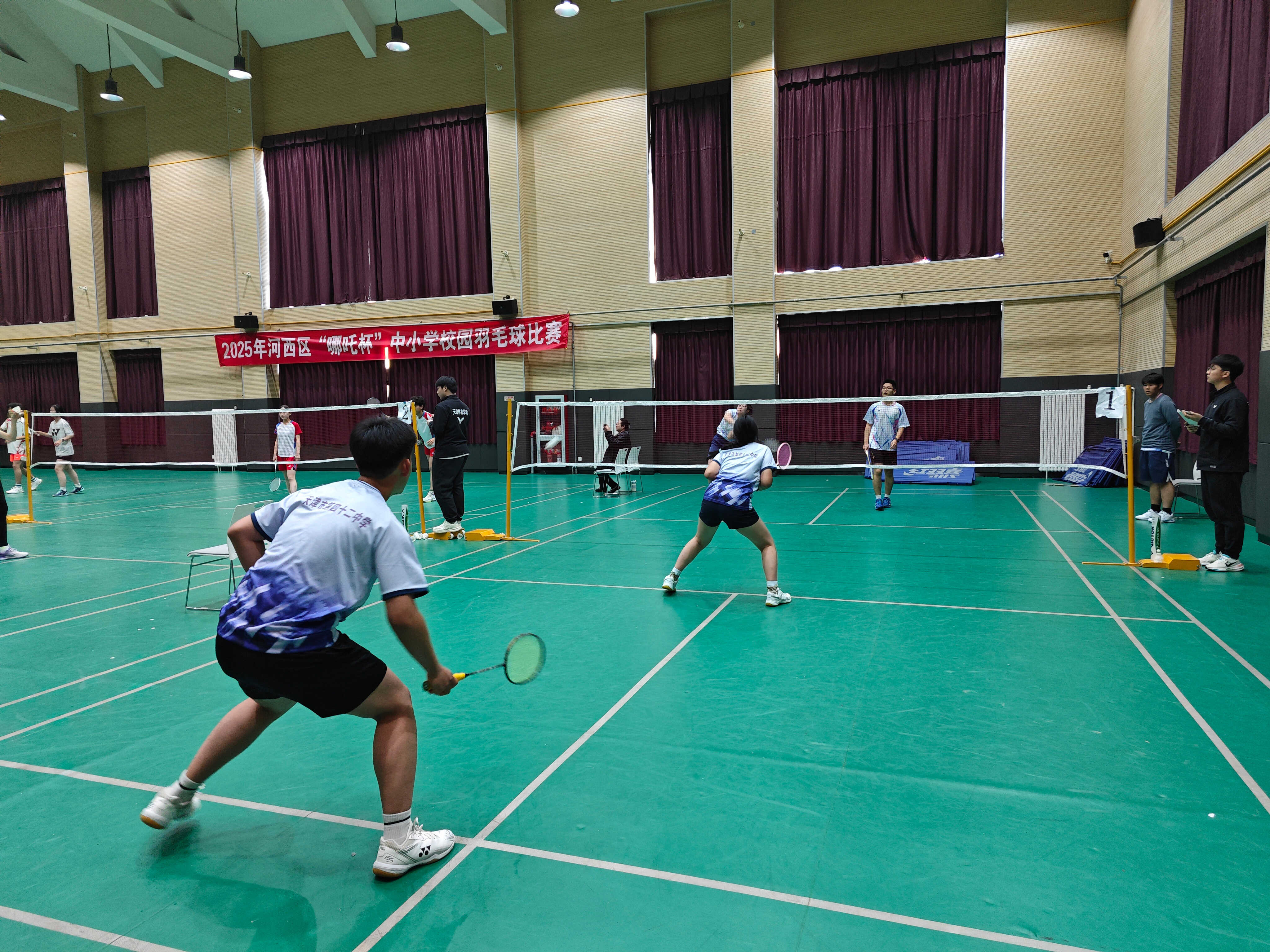 近日,2025年河西区“哪吒杯”中小学校园羽毛球比赛在新华圣功学校顺利举行。本次比赛由河西区教育局、河西区体育局共同主办,河西区少年儿童业余体育学校承办,新华圣功学校协办。赛事采用混合团体赛形式,分为高中组、初中组、小学甲组(四至六年级)和小学乙组(一至三年级)四个组别,共吸引全区36所中小学、58支代表队、300余名学生参与。