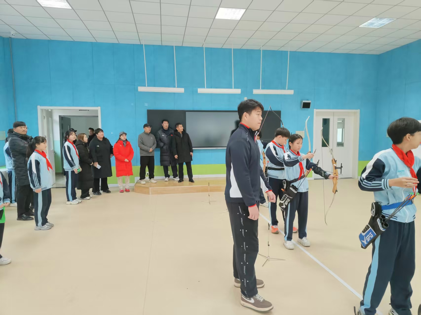 2025年12月12日,天津市体操武术射击射箭运动管理中心一行莅临宁河区体育公园召开现场会开展调研指导工作。指导组先后深入麒麟足球主题体育公园、宁河区双奥中心、轮滑主题公园、宁河区市民中心射箭馆,实地察看场馆设施建设、运动队训练等情况。宁河区体育局及区射箭协会相关负责人陪同。