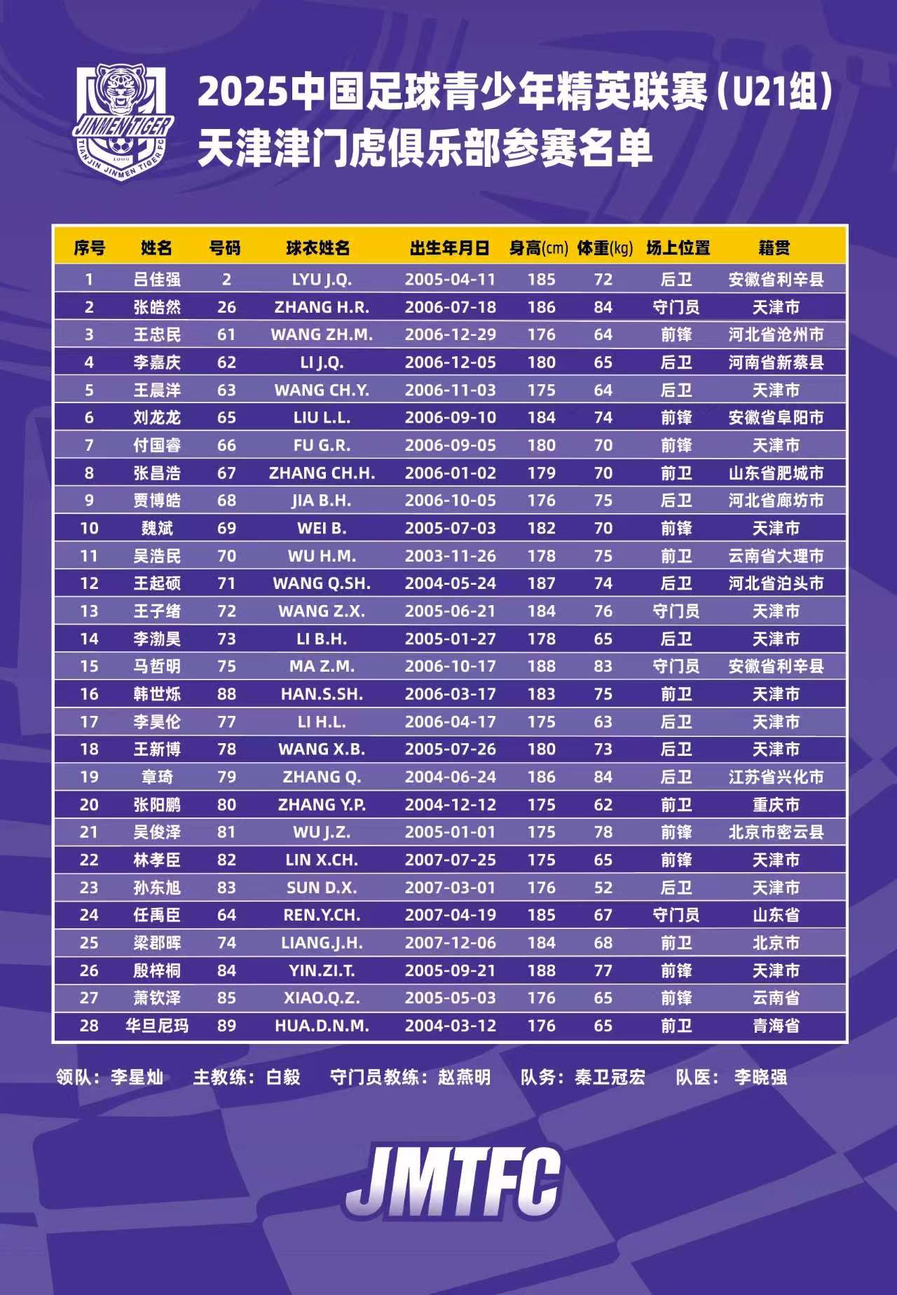 2025赛季的U21联赛从4月打响,津门虎U21梯队在小组赛阶段以第二名的身份进入预赛。预赛阶段球队发挥出色,取得9胜1平的不败战绩进入晋级赛阶段。