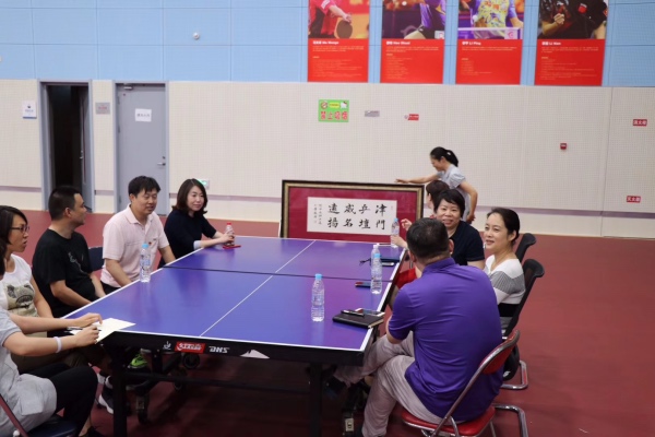 活动中,天津市乒乓球运动管理中心主任、书记同湘江道小学校长、河西体育馆馆长、河西体校乒乓球教练进行了座谈交流。座谈中,作为基层训练单位,河西体育馆和湘江道小学领导、教练向中心领导汇报了乒乓球训练的开展情况和取得的成绩,中心也介绍了目前专业队的梯队建设和选材的标准和要求。肯定基层训练成绩的同时,也提出了更高的要求。