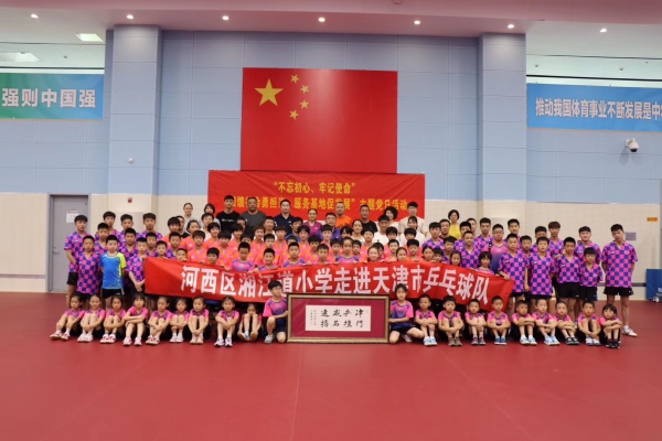 2019年6月18日下午,由河西体育馆和河西区湘江道小学联合组织的走进天津乒乓球队观摩、交流活动在天津市团泊体育馆乒乓球馆举行。参加活动的有河西体育馆领导、湘江道小学校长,河西体校乒乓球教练,30名河西体校乒乓球运动员,还有湘江道小学的全体体育教师。