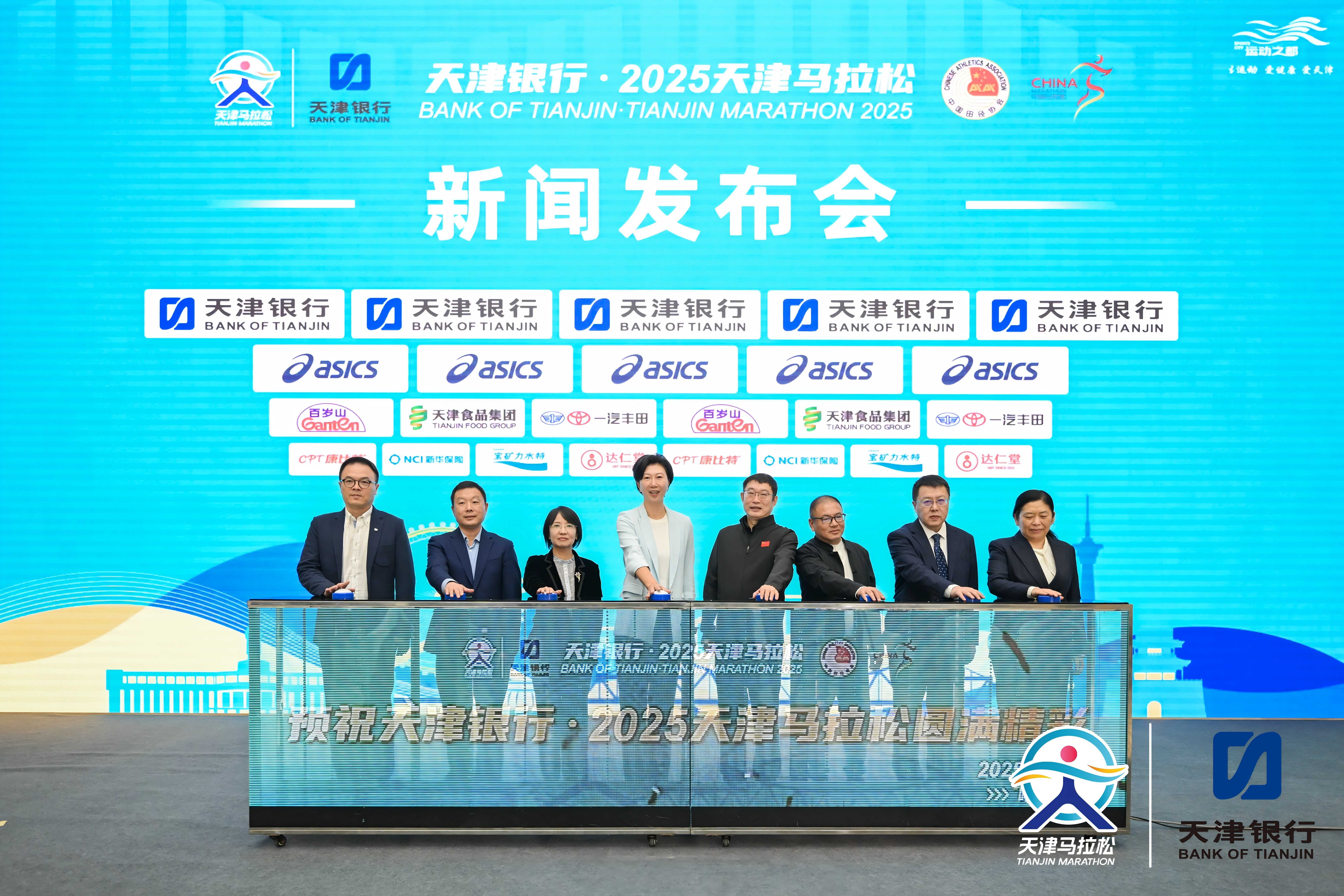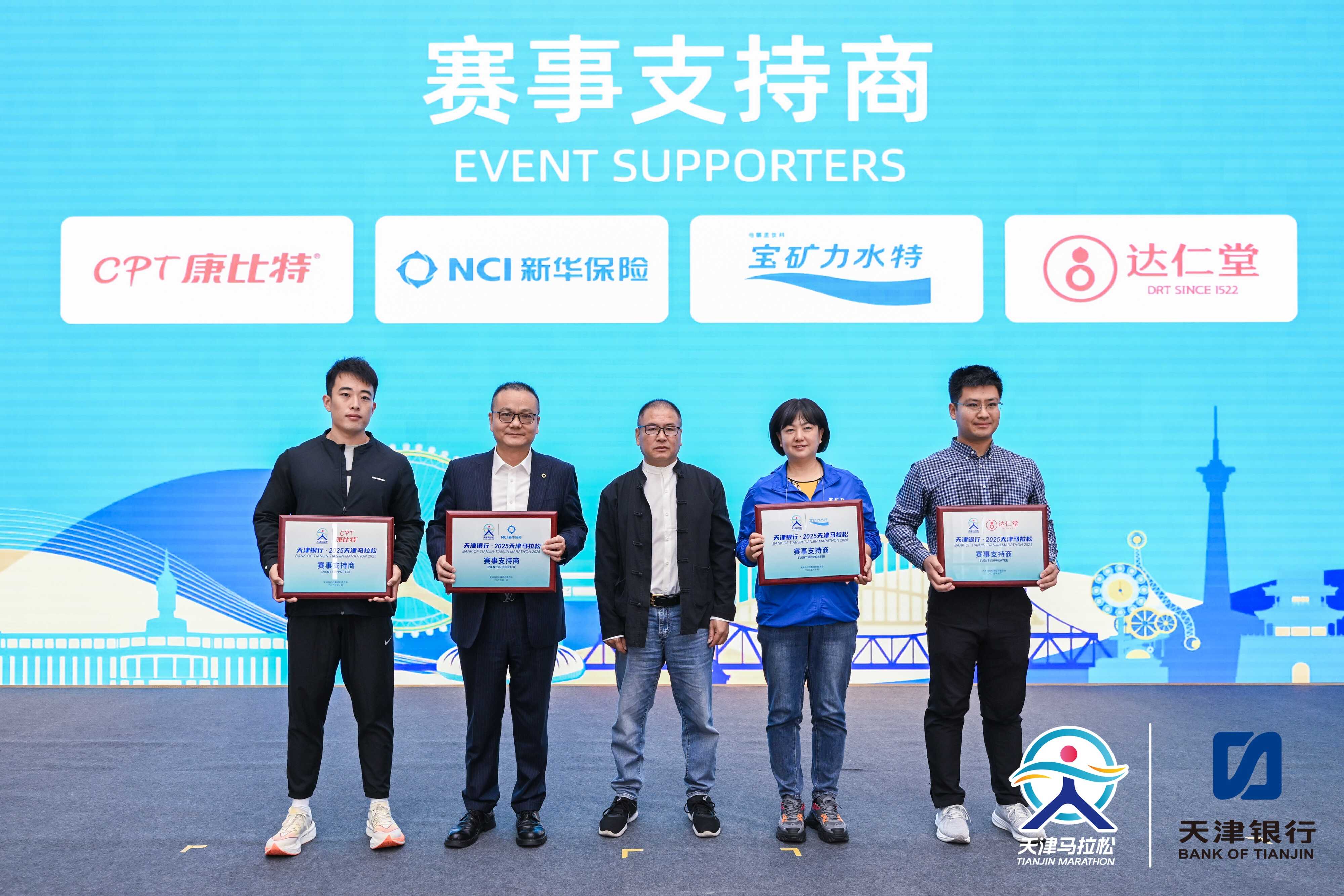 天津银行党委书记、董事长于建忠,天津市体育局党组成员、副局长李珊,天津市体育局二级巡视员陈曦、天津市商务局二级巡视员辛韶虹,天津市文化和旅游局党组成员、副局长陈冰,天津银行副行长郑可,中央广播电视总台天津总站党委副书记、副召集人伍劲松,中体产业集团党委委员、副总裁,中奥路跑体育管理有限公司总经理杨力以及赞助商和新闻媒体代表出席本次新闻发布会。