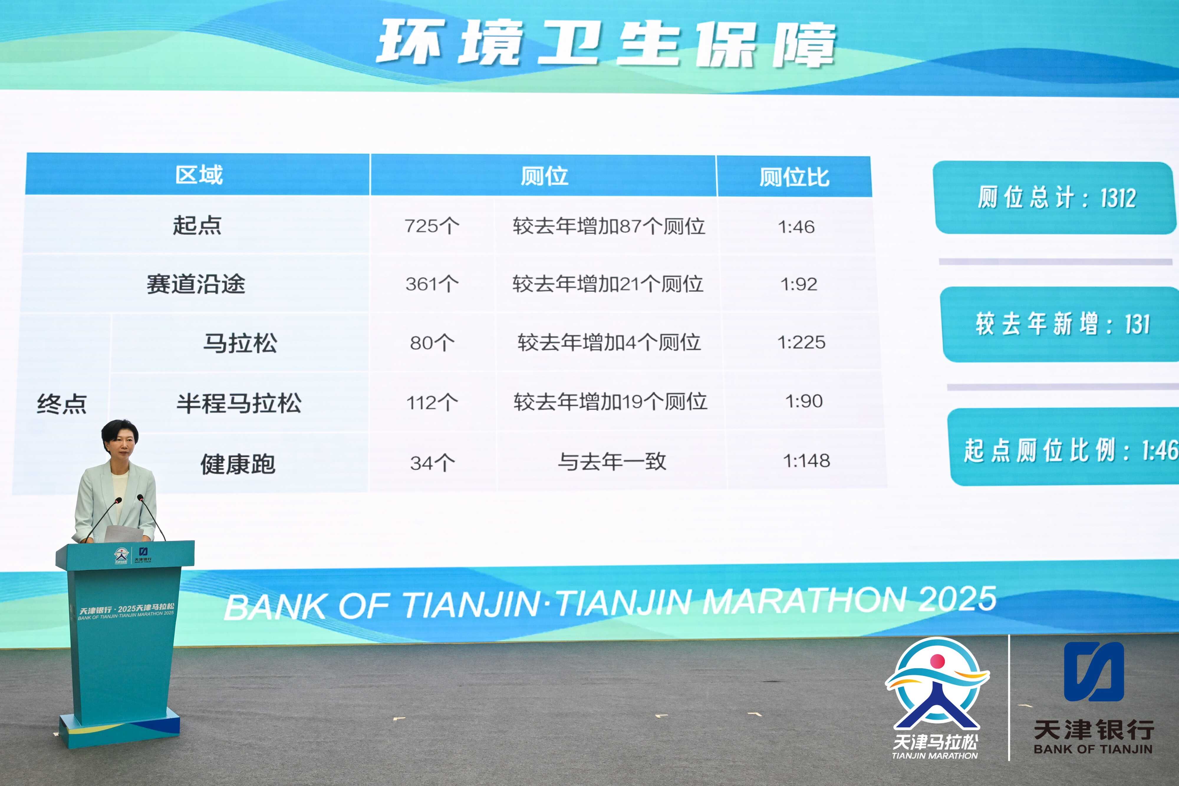 为营造更好的参赛环境,赛事起终点及赛道沿途的厕位配置均有大幅提升,总厕位数量为1312个,较去年增加131个。其中,起点卫生间厕位725个,较去年增加87个厕位,厕位比为1:46,充足的厕位将有效缓解起点排队如厕的压力,全力营造文明参赛的环境。此外,组委会在各关键区域配备充足环卫力量与垃圾桶,增设流动垃圾车,维护赛道干净整洁。