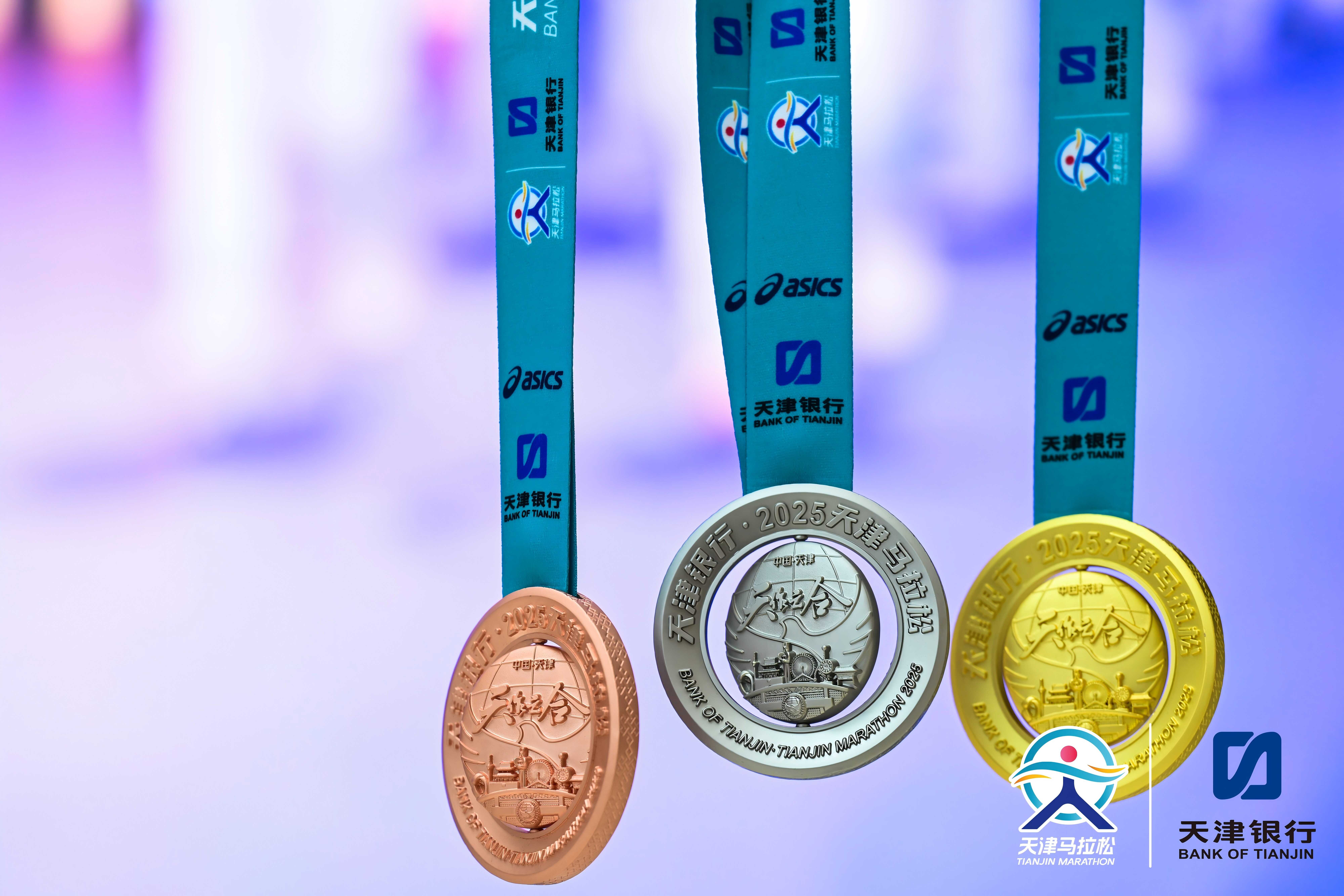 天津银行·2025天津马拉松奖牌以“美美与共、天作之合”为核心理念,将多元文化的交流互鉴与马拉松精神相呼应,寓意来自世界各地的跑者在此汇聚,交流交融,共享运动的快乐与城市的热情。