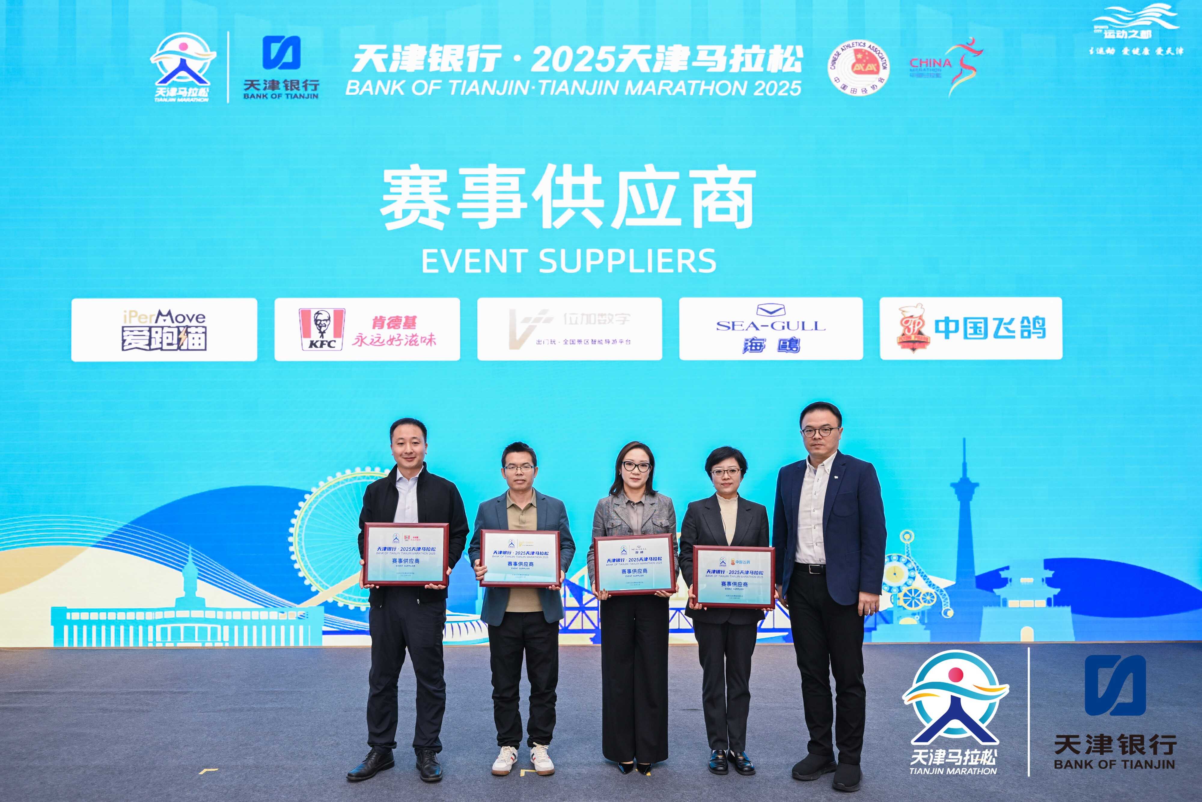 发布会上,组委会先后为赛事冠名商天津银行,赛事合作伙伴、赛事赞助商、赛事支持商、赛事供应商颁发赛事纪念牌,感谢他们为天津银行·2025天津马拉松的鼎力支持。