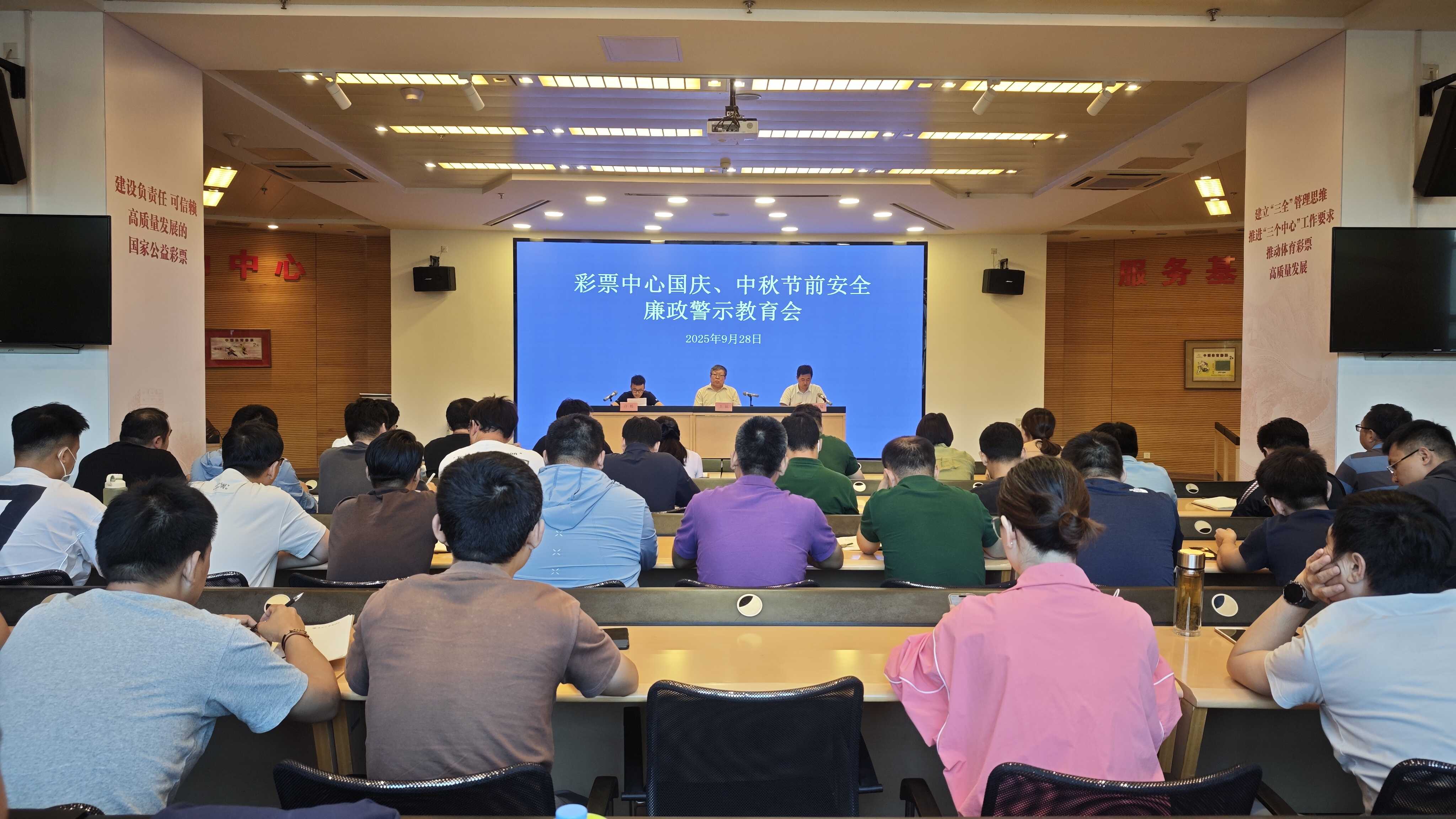 9月28日,彩票中心召开国庆、中秋节前安全教育和廉政部署会,彩票中心全体干部职工参加。