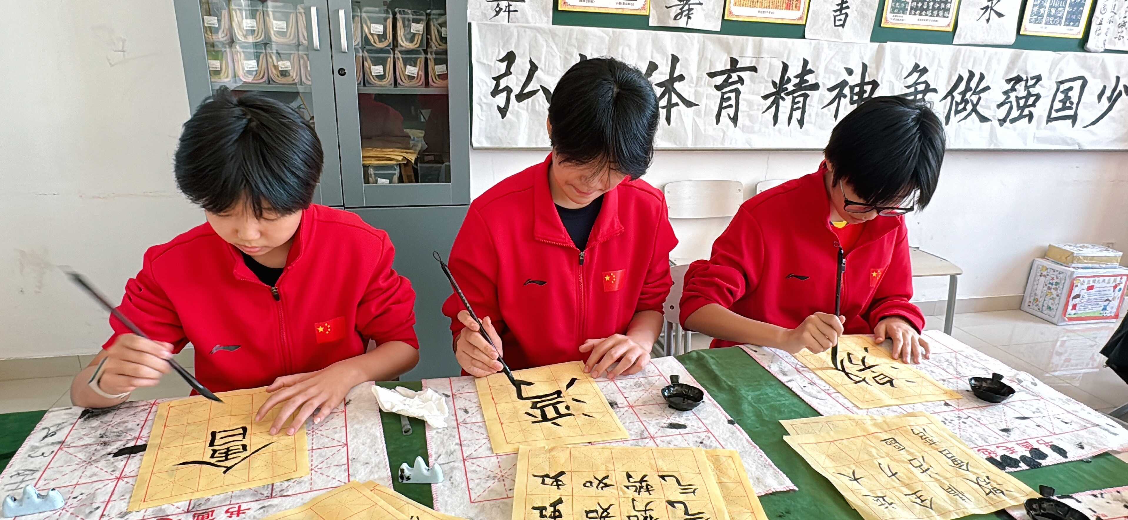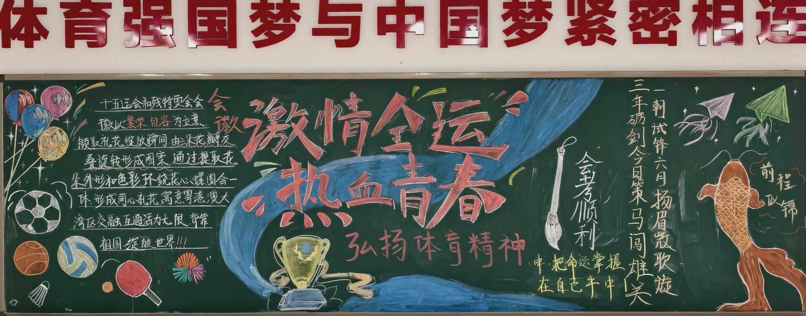 “全运健儿带伤出战的坚守,该不该成为我们的榜样?”“如何把赛场上的拼搏,用到数学难题和日常训练中?”在主题班会上,老师们通过赛事集锦、健儿访谈片段,带同学们重温全运赛场上的热血瞬间,让抽象的精神变成了看得见、摸得着的成长动力。“是跑道上永不言败的冲刺,是领奖台上热泪盈眶的荣光,是团结协作中彼此支撑的力量……”同学们以全运赛事为蓝本,深情抒发对运动健儿的崇敬之情,字字铿锵、句句激昂。书法课上,同学们挥毫泼墨,以笔墨传递对全运精神的深切敬意。全运主题板报堪称“视觉盛宴”,赛事冷知识、榜样事迹,用清晰排版呈现满满干货,营造出热烈昂扬的氛围,让板报成为全运精神的“立体宣传册”。