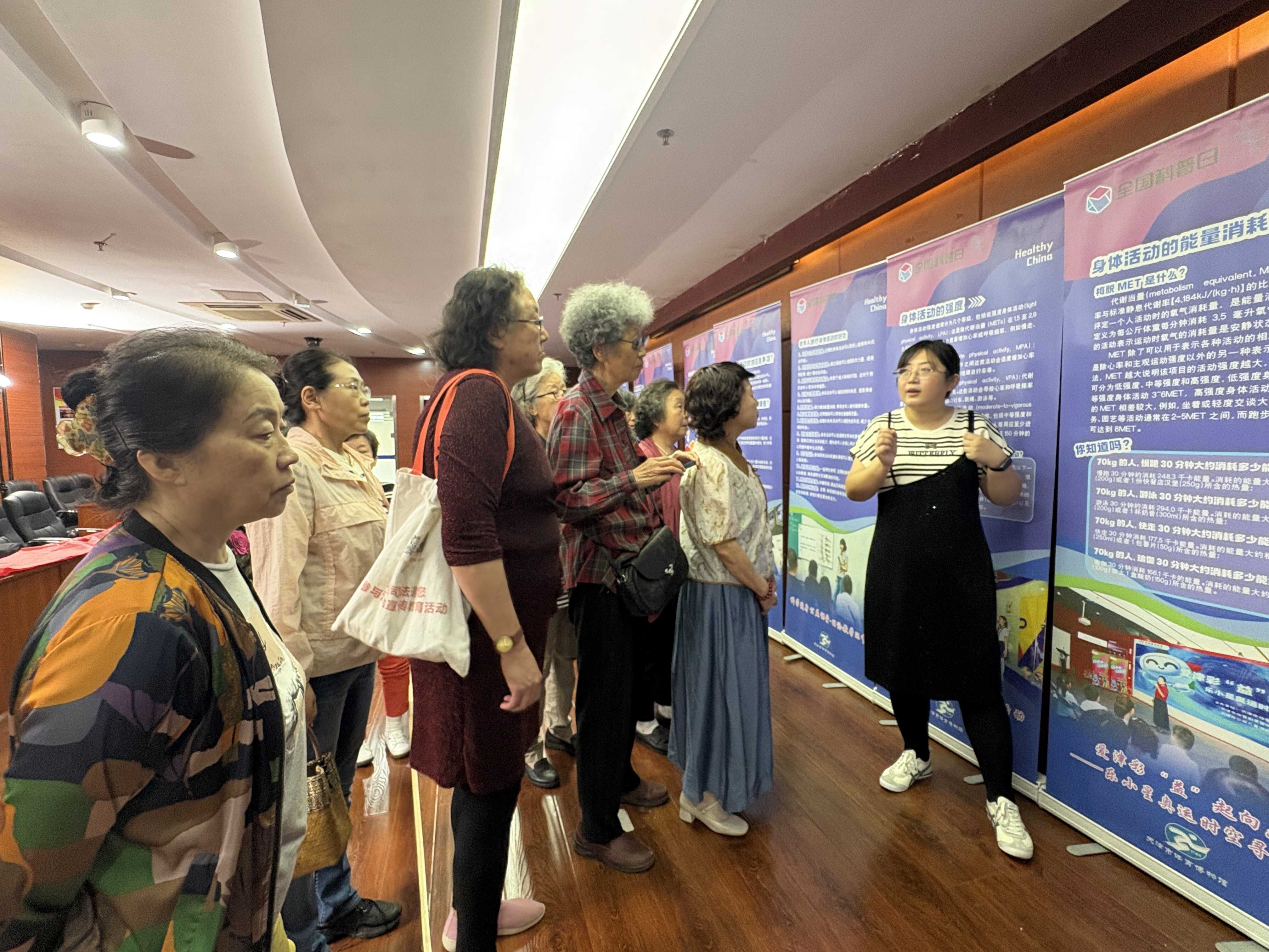 活动现场还同步设置了科学健身主题巡展,通过图文并茂的展板系统展示了针对不同人群的科学健身指导原则、营养膳食建议及运动注意事项,吸引了众多居民驻足观看和学习,进一步巩固和延伸了课堂所学知识。