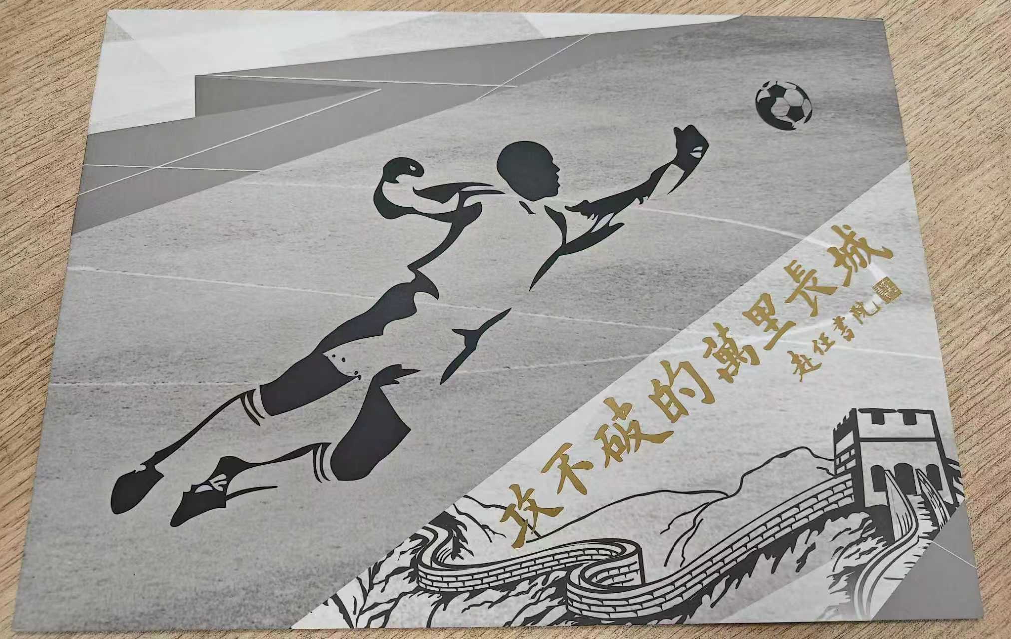 此次捐赠中,《攻不破的万里长城》纪念邮折再现了张俊秀赛场上的经典瞬间,书法作品则展现其对传统文化与体育精神的融合传承。这些藏品进一步丰富了体育博物馆的足球项目馆藏,为研究天津体育发展、弘扬体育文化提供重要实物依据。
