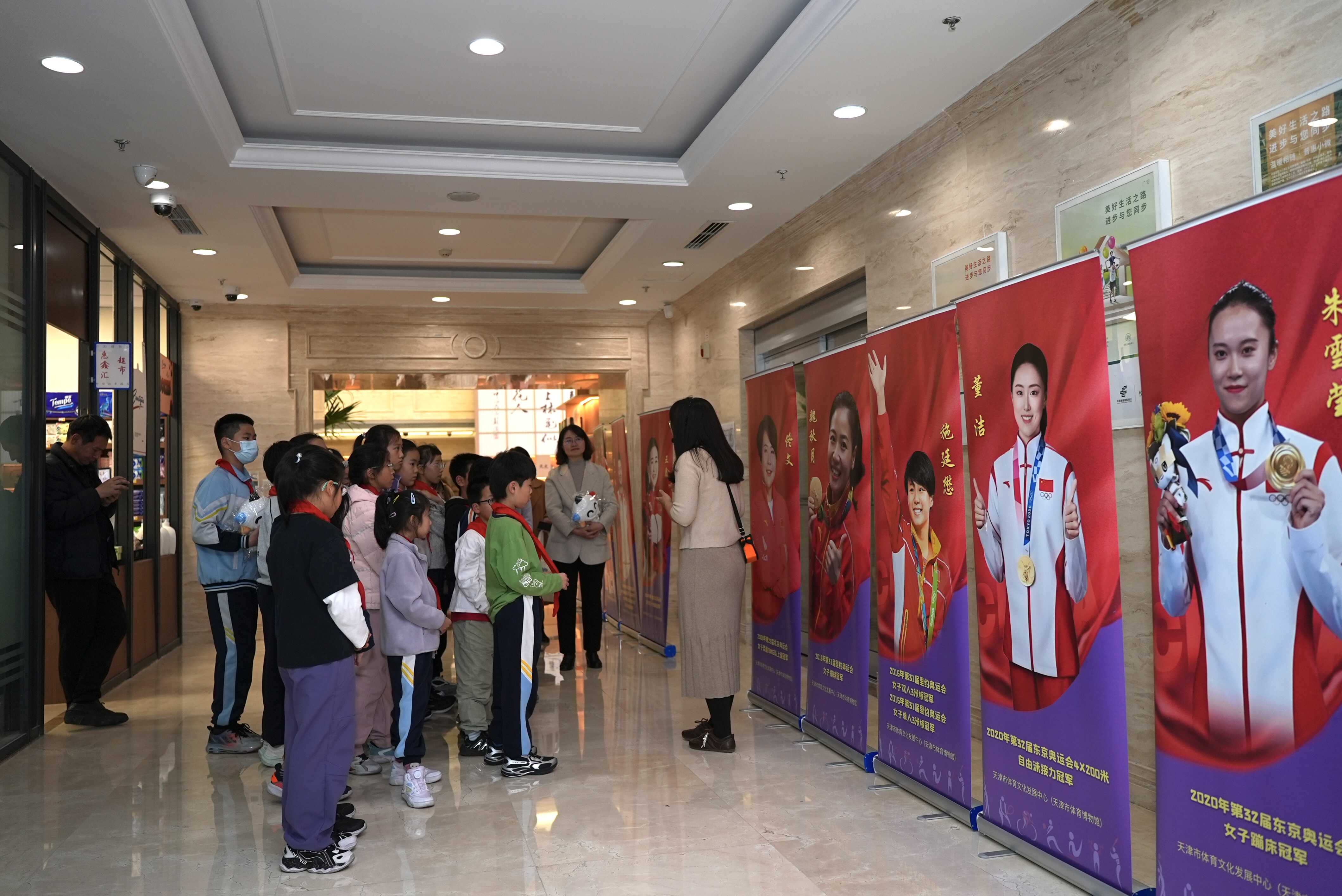 中心工作人员还现场讲解了“‘津’彩体育 奥运之光”巡展内容,通过生动的体育故事激发孩子们对体育文化的兴趣。互动问答环节中,孩子们踊跃参与,在轻松愉快的氛围中了解了天津体育的历史与辉煌。