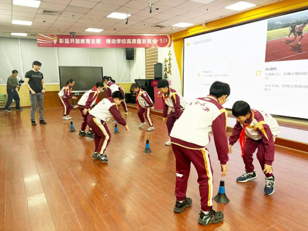 活动现场气氛活跃,学生们积极参与互动,纷纷表示收获颇丰。六年二班张航搏同学分享道:"原来运动有这么多学问,我今天知道了运动时要每隔15到20分钟小口喝水,不能剧烈运动后一次大量喝水等等,以后要将这些科学方法融入到日后体育活动中。"这种寓教于乐的教学方式,不仅让学生们掌握了科学健身的知识和技能,更激发了他们对体育运动的浓厚兴趣。