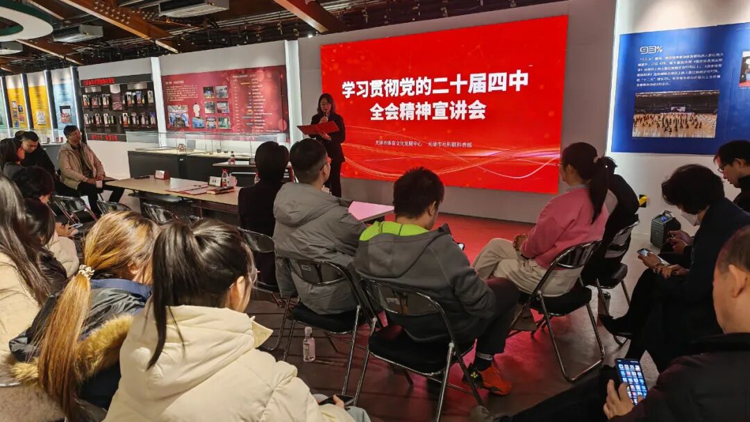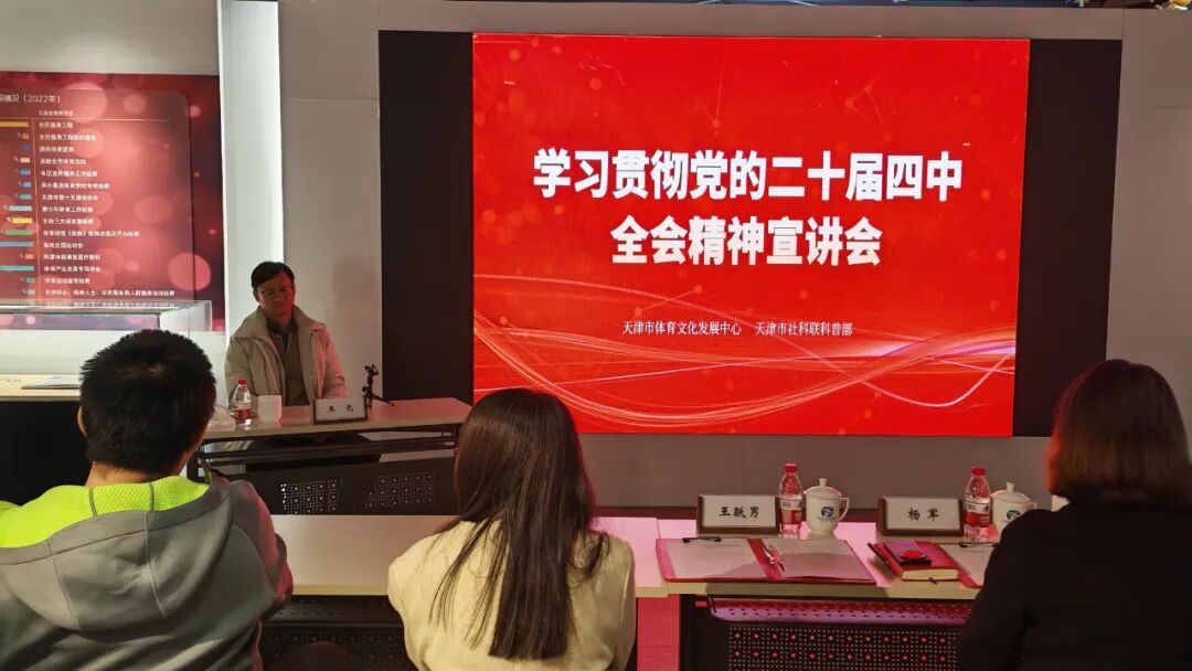 12月3日下午,由天津市体育文化发展中心联合天津市社科联科普部共同举办的“学习贯彻党的二十届四中全会精神,推动体育文化事业高质量发展”专题宣讲会,在天津市体育博物馆成功举行。