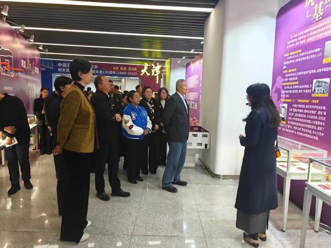 与会嘉宾与观众共同参观了展览。展览内容翔实丰富,从最初的历史引入到当代的蓬勃发展,不仅致敬了历代篮球先驱者的筚路蓝缕与艰辛开拓,也彰显了当代天津篮球人,特别是天津先行者男篮的接续奋斗精神。