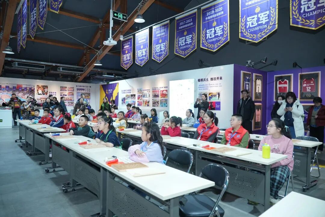 随后,博物馆讲解员为同学们生动讲述了天津地区丰富的体育类非物质文化遗产项目及其背后的历史故事,从深厚的历史脉络中解读天津独特的体育文化基因。在接下来的“体育主题木板印刷”体验环节中,在工作人员指导下,孩子们亲手操作,将体育人物、传统吉祥图案等元素拓印成画,在墨香与实践中感受非遗技艺的精妙,创作出属于自己的“体育年味”作品。