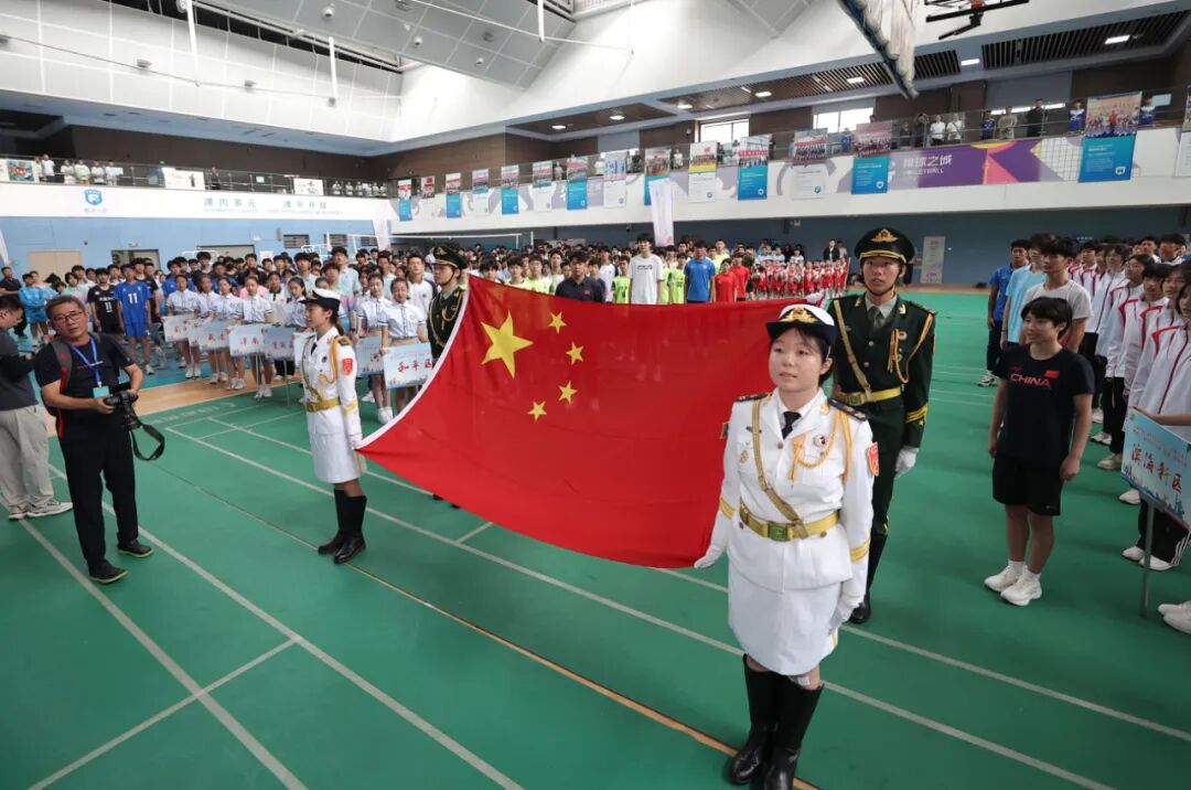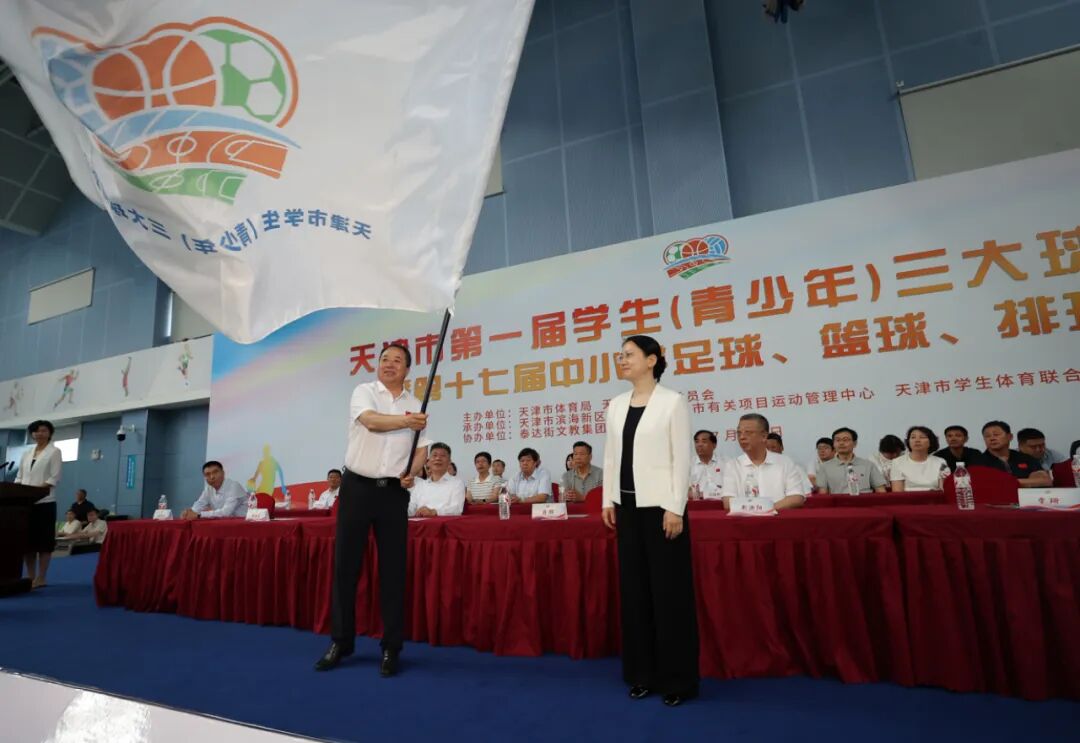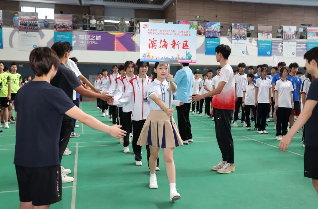 7月16日上午,天津市第一届学生(青少年)三大球运动会暨天津市第十七届中小学足球、篮球、排球赛在滨海新区开幕。