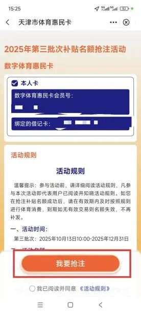 抢注:进入“数字体惠卡”专属活动页面。根据页面指引,完成数字体惠卡申领后,点击“一键抢注”补贴名额!