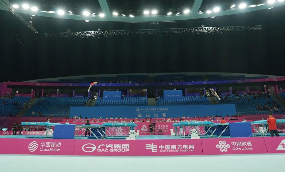 作为中国体育代表团在奥运会上的优势项目,本次全运会蹦床赛事有东京奥运会女子冠军朱雪莹,以及巴黎奥运会男子亚军王梓赛、季军严浪宇等多位名将出战。因此,即便是在工作日进行的比赛,依然吸引了不少广州市民来到现场观赛。