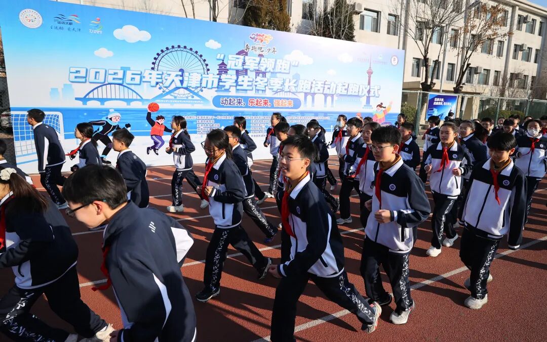 1月8日,“滨海农商银行杯”天津市第四届少年儿童冬季体育节启动仪式暨“冠军领跑”2026年天津市学生冬季长跑活动起跑仪式,在天津市卓越中学举行。市关工委、市体育局、市教委、团市委及河西区相关领导出席仪式,共同见证这一青少年体育盛会的启幕。