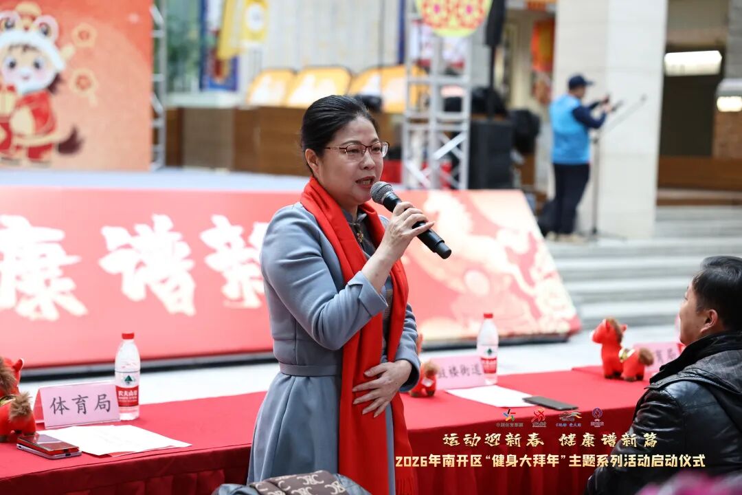 南开区体育局、南开区商务局、鼓楼街道相关负责人共同出席启动仪式,与百余名健身市民一道,在热烈而充满活力的氛围中,同享运动喜悦、共迎健康新春,传递出“运动迎新春,健康谱新篇”的美好愿景。