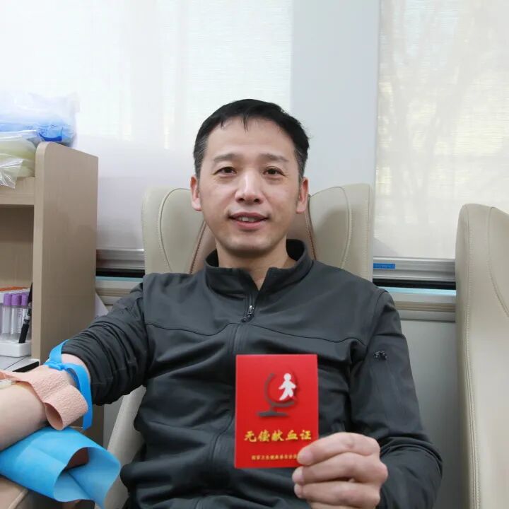 栾志才每年都坚持献血,他说献血对身体没有损害,还能为社会、为需要的人做点贡献,挺高兴的,希望自己可以帮助更多的人。