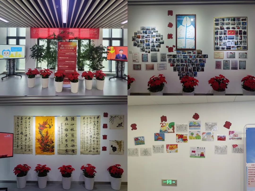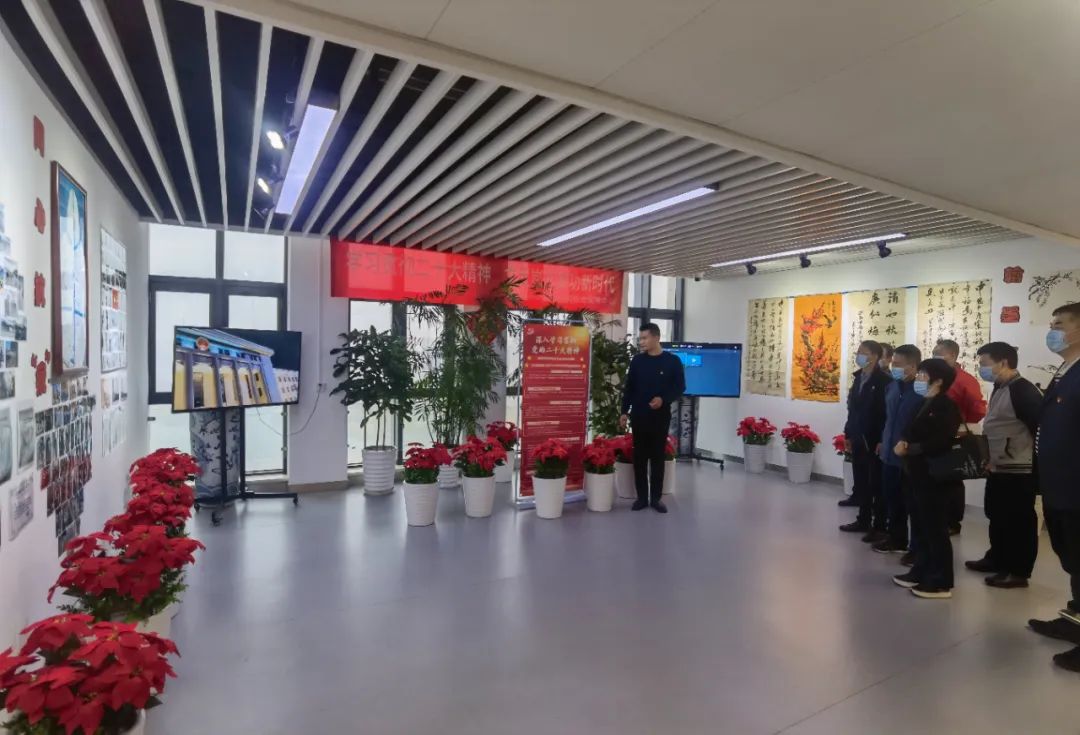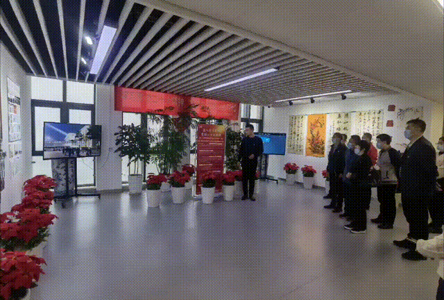 座谈交流后,双方人员来到综保中心党建文化阵地,参观了同心抗“疫”、翰墨言志、童心向党照片墙和书画展。“三个主题展体现了三心,一是向党表决心,建设好党建文化阵地,为党员学习教育和党支部开展活动提供保障。教育引导全体党员坚定捍卫‘两个确立’,坚决做到‘两个维护’,深入学习宣传贯彻党的二十大精神,立足岗位建功新时代;二是照片讲爱心,每一张下沉战疫照片背后都有感人的故事,记录着综保中心党员干部闻令而动、下沉社区、驰援津南的责任与担当,展现了天津体育人坚持党建引领,助力‘无疫小区’‘无疫网格’的奉献和付出。三是书画强信心,综保中心党员干部认真学习党的二十大精神,坚定理想信念,创作了书画作品,进一步表达欢欣鼓舞,更好地宣传党的二十大精神。中心党员干部职工引导孩子学习了解党的百年奋斗历程,听党话、感党恩、跟党走,孩子们用稚嫩的画技和声情并茂的朗诵表达对党、对祖国、对家乡的热爱。”随着综保中心青年干部刘鹏声情并茂的介绍,现场响起一阵阵热烈的掌声。